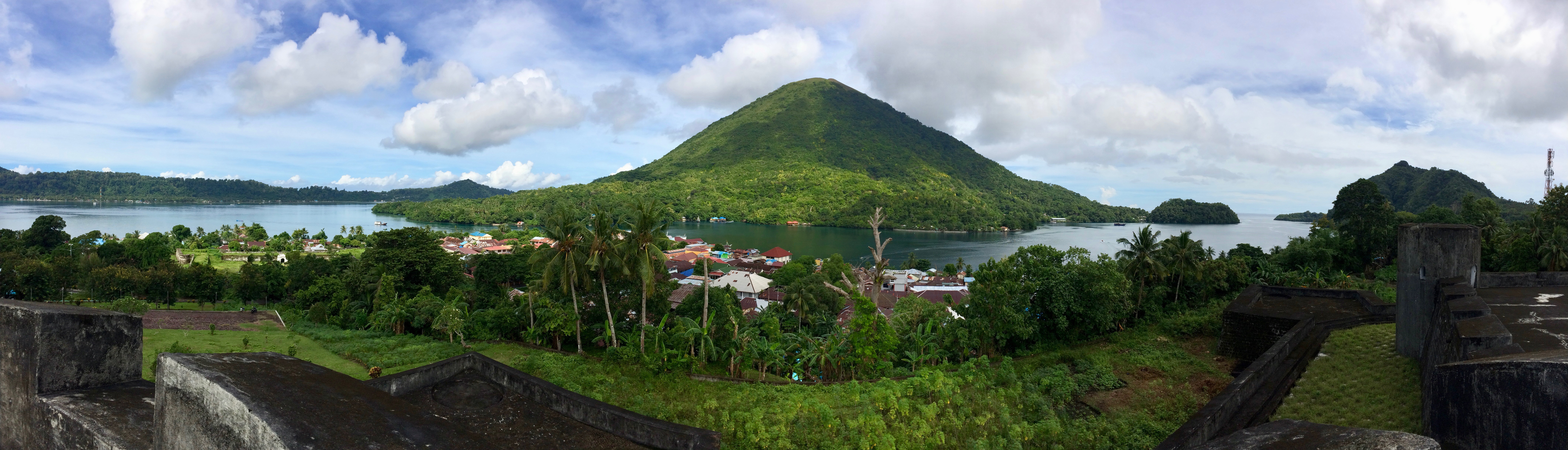 Gunung Api August 12, 2017 8494 × 2436 Banda Islands: Adventure, History and Living like a Castaway Gunung Api from the top of Benteng Belgica on Banda Naira.
