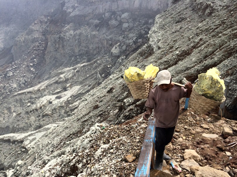 Carrying Sulphur August 11, 2017 3241 × 2431 History, Natural Beauty & Wildlife in East Java The average man does three trips a day carrying about 70 kilos per trip.