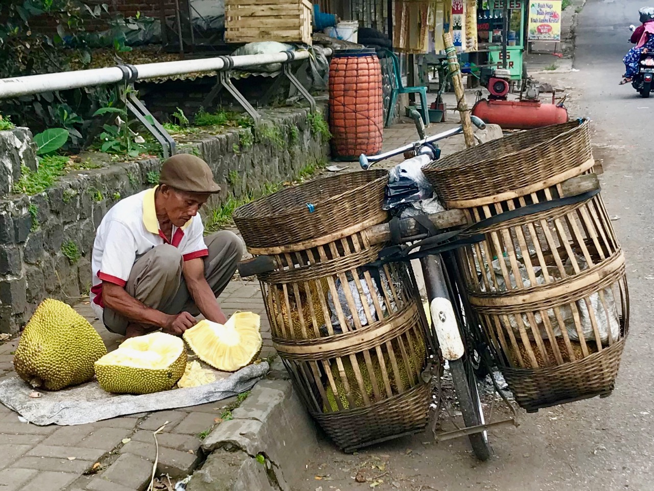Carving jackfruit on the roadside